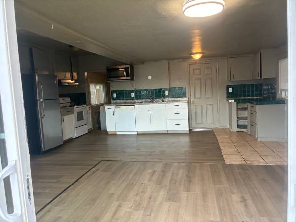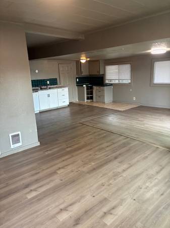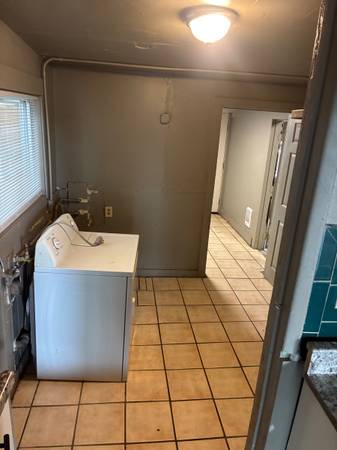 Fenced yard, laminate flooring, washer and dryer hookups, shed, new paint.