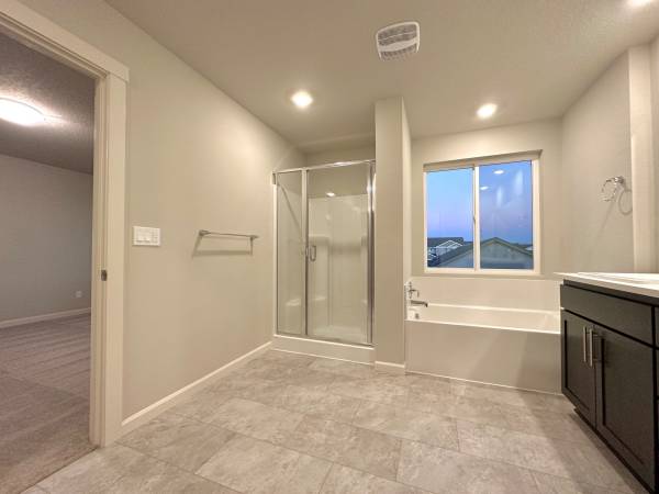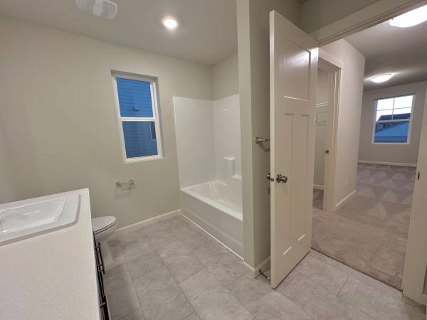 Upstairs, the expansive primary suite boasts a soaking tub, separate shower, and oversized walk-in closet. Bedroom #2 has direct access to Bath #2, creating a perfect second en suite option. A convenient laundry room with washer/dryer hookups is also on the second floor.