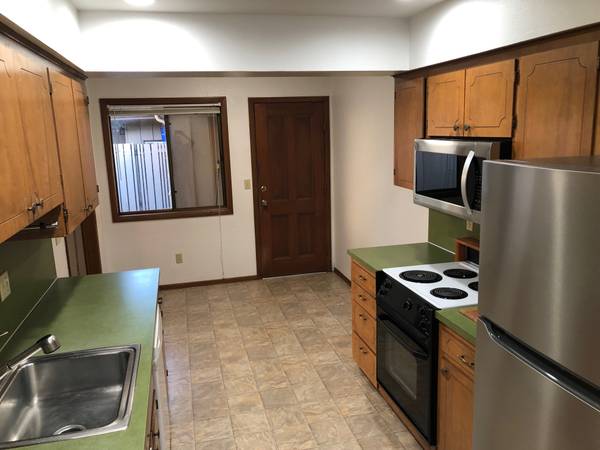 2 Bedroom, 1 bathroom single level 1200sf duplex wtih attached single car garage. Only common wall with other unit is the garage. Corner duplex - different street addresses - great privacy. Perfect for healthcare workers who would like to walk to work, or perhaps empty-nesters looking to downsize. This is not apartment living.