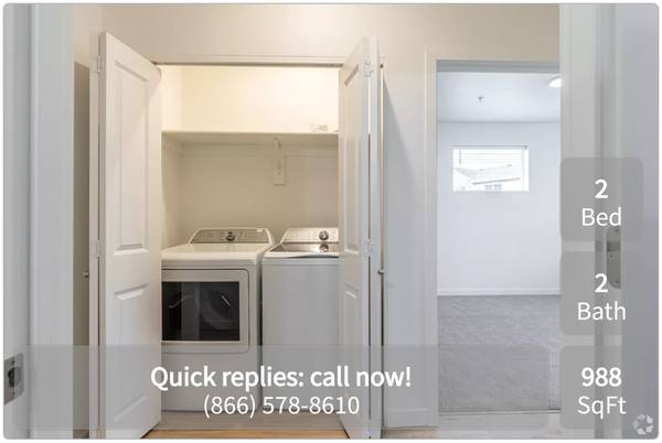 We currently have a gorgeous 2 bedroom 2 bathroom renting for $1895 per month. This apartment home comes with 988 sq ft.