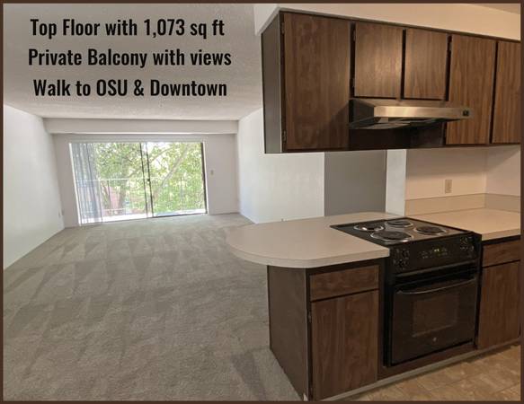 Walk to campus from our perfect location at 7th and Monroe, right across the street from Central Park and the Corvallis Public Library. Spacious units up to 1,655 sf, feature beautiful views from our six-story building. All apartment doors are on an inside hallway that is well-lit at all hours of the day and night. Most apartments include central air conditioning, and a private balcony or patio. Our building includes a 24-hour laundry room, with reserved parking available. Pictures may be of a similar unit.