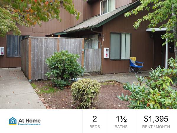 Townhome situated in a quiet community with access to the Albany Santiam Canal and wildlife. Private fenced patio. Two bedrooms with one being a large master bedroom and 1 1/2 bathrooms. Electric forced air! Dishwasher included. Washer and dryer hookups. Garage storage space included with rental.Amenities
