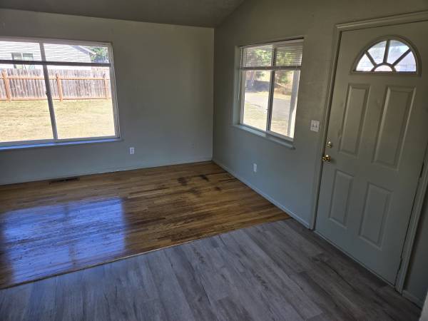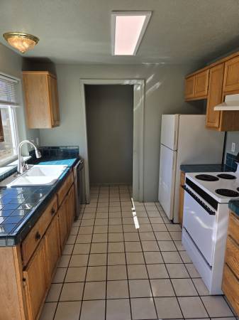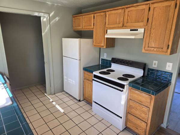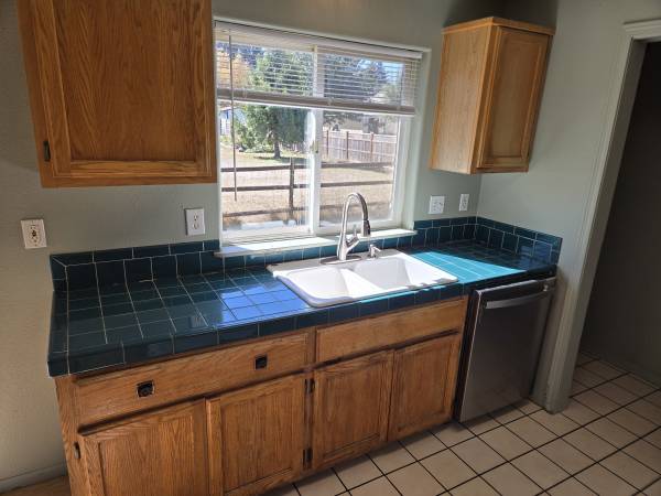 Oak floors, tiled kitchen and bath, dishwasher, gas heat, new paint, garage, fenced yard.
