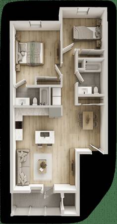 Our 1 and 2 bedrooms homes are designed for the way you live. Apartment homes feature beautiful finishes like quartz counters, sleek cabinetry, and hardwood-style plank flooring. Floor plans provide ample space and a washer/dryer set included in each unit.
