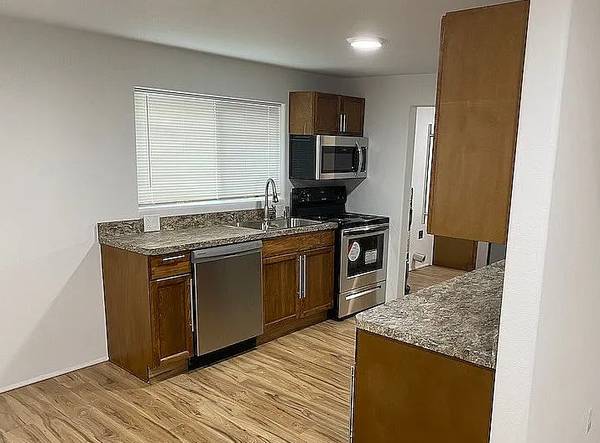 Fully remodeled 3 bedroom 2 bathroom. Stainless steel appliances, with microwave over the range. New Cabinets and countertops. Mini split heat pump with A/C. Wood floors in living room, kitchen and laundry room. Washer and dryer hookups. Two car carport, with large yard. Fully insulated with hardiplank siding.Details