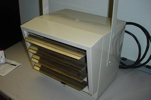 For sale is a Morrille mid-size commercial-grade 220v electric space heater w thermostat; it produces 5000 watts at 240 volts. - $150.00