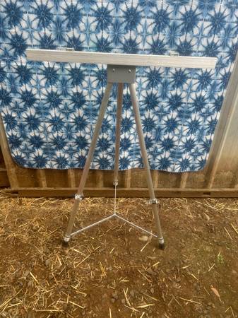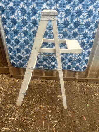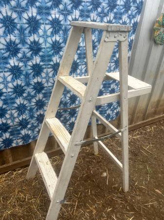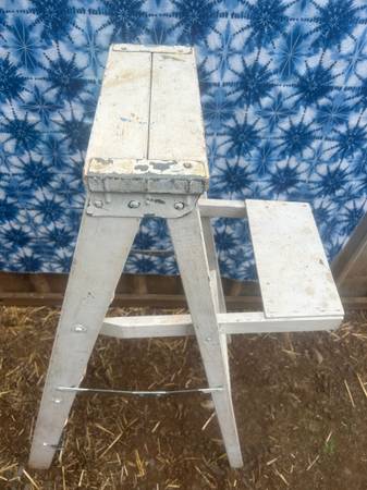 Easel will hold large paper, has hole tabs to clamp on to paper; $15. 4 foot painter's ladder. Might be a nice photo prop or plant stand, $20.