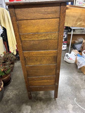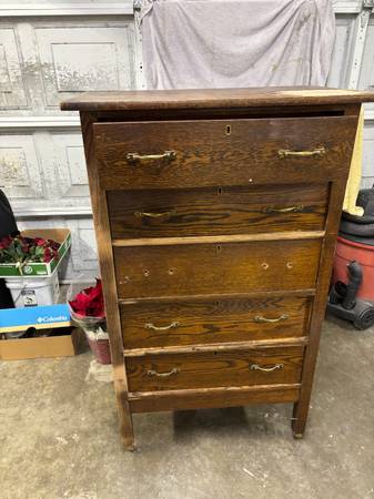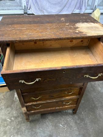 For Sale Antique oak dresser (circa 1890-1930's) That is best guess from research. I believe this was called a tallboy (again...best I could find). All hardware come's with the unit. It has good bones... I had the piece to refinish, but have decide to go in another direction. All Dimensions are approximate...