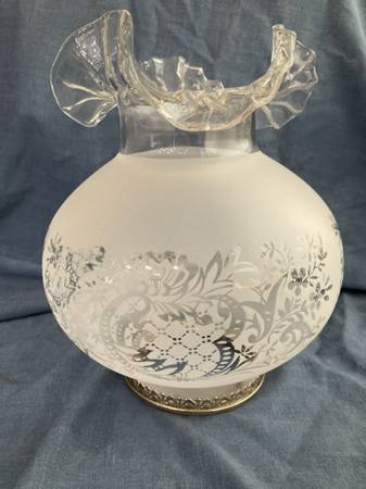 This beautiful VICTORIAN lamp globe measures about 9-10" tall. The base is 3" in diameter. Fits on antique lamps ....