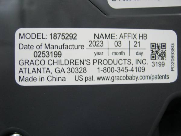For sale a pretty nice child car seat by Graco named AFFIS HB mdl #1875292, manufactured 3/2023, has 2 extra attachment points that snap to metal loops that come in most of the newer cars. Most of the material surfaces are detachable and could be laundered. Looks to have many years life in it but not sure when expiration date is but no guarantees. Our granddaughters out grew this one.