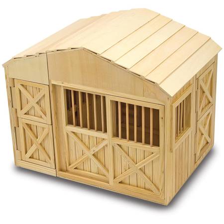LARGE WOODEN BARN WITH 2 SETS OF FENCING Nice play barn for Breyer horses. Has loft, split door, and sliding stall door Foldable for storage Has extra wooden fencing with it. Near Salem
