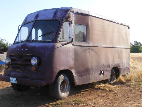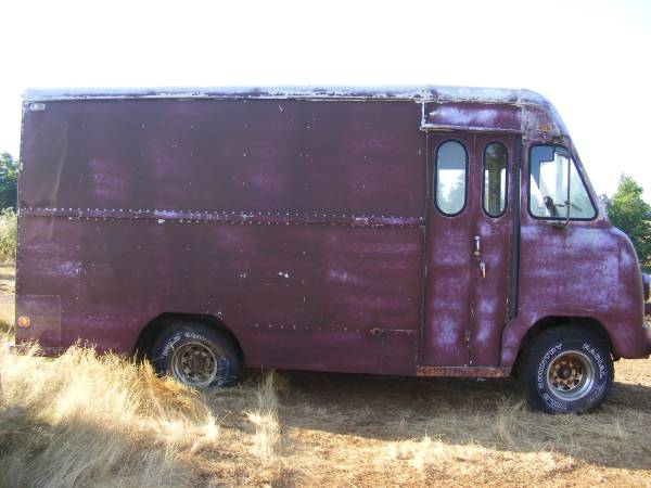 $2500.00 cash price. For sale or maybe trade is my 1964 Ford Grumman P350 Bread Delivery Truck. I have a clean title and it is in my name. It is currently being stored in Salem. It will need to be towed. This truck has been sitting for about 15 years and currently does not start and the brakes are not working. The battery is dead. It has rust/rot in areas around the top of the front windshields, and a few spots inside the cab floor. I live in Lebanon and don't get to Salem often enough to work on this so I am selling it as is. I drove it all around for a few years and it ran before parking it there. The brake pedal goes to the floor when pressed. The brakes did work before when I parked it but not now. The engine ran when I parked it too but it was never tuned right. Whenever I would stop at a stop light I needed to put it in neutral, and when the light turned green I had to rev the engine up slightly before putting it back into drive otherwise the engine would stall. I never fixed that problem, I just got used to driving it that way. Also, it has aftermarket wheels and tires on it that are wider than stock. This truck never had power steering and is hard to turn those fat front tires unless the vehicle is rolling. You need to get the hang of driving it then it drives fine. There was a learning curve to driving this truck but once I got it figured out I drove it all over, between Salem, Lebanon, and Corvallis. It has been sitting for 15 years, does not start, the brakes are stuck, and the truck needs to be towed. Sold as is.