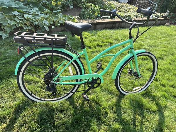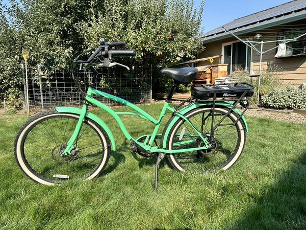 This barely used e-bike is for sale! It has a brand new battery 4 ah, goes 40 miles on a charge, 25 mph!! 2-year warranty. I had to stop riding due to a medical condition.