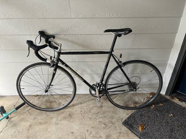 Just replaced chain and outer gear Gears are 2x8 Clip in pedals Tires are fairly worn but still hold air Has different colored tape on one of the handles