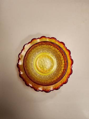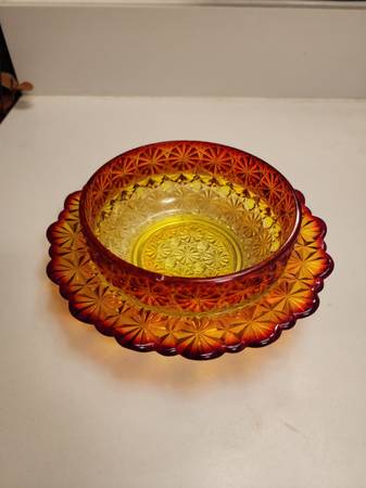Rare Vintage Daisy & Button Amberina Glass Footed Bon Bon Bowl, L.E. Smith Glass Company, bowl is UV Reactive in a Florescent orange and red. $45 In albany by I5