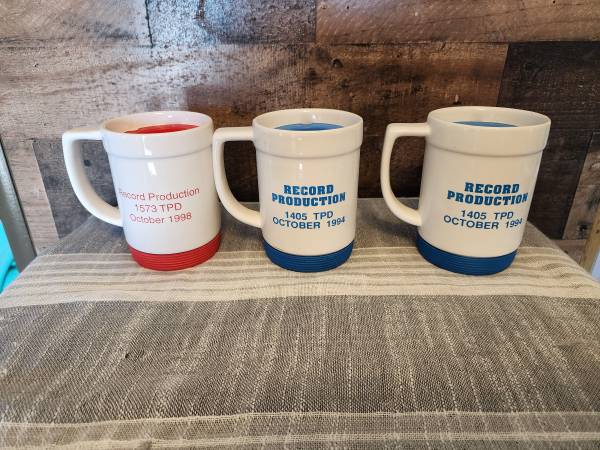 Vintage Willamette Industries Albany Paper Mill Production Award Mugs. I have one red and one blue in new condition. Ill throw in one blue one that has a hairline crack free. $45 In albany by I5