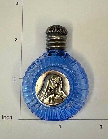 Holy Water Bottle, Blue glass silver metal medallion of the Mary - $10 (Corvallis)