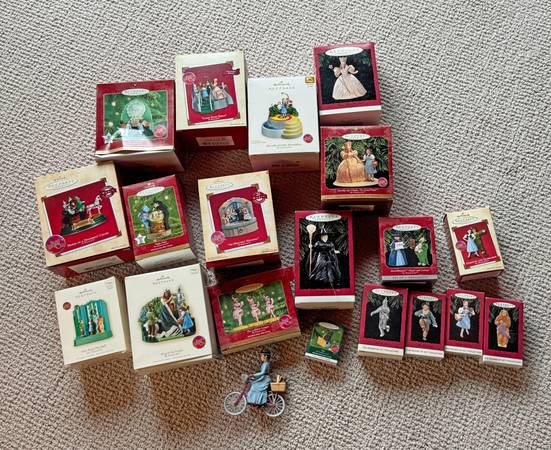 This is a set of 20 collectible Hallmark Wizard of Oz Christmas ornaments. All but one is in its original box, and all are in excellent condition. Some light up, some talk, some play music, and all are beautiful!