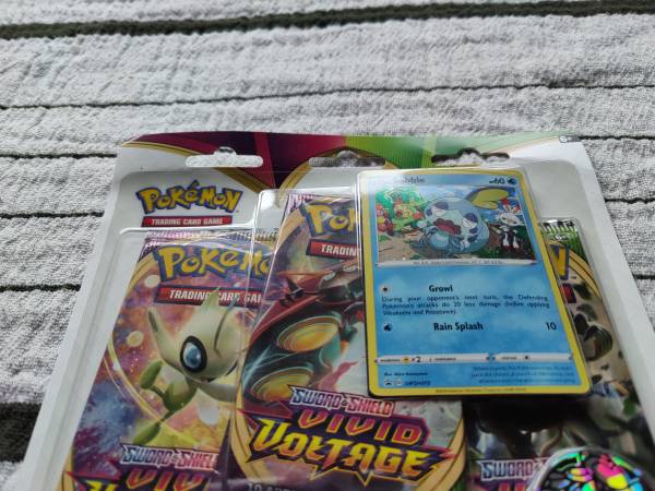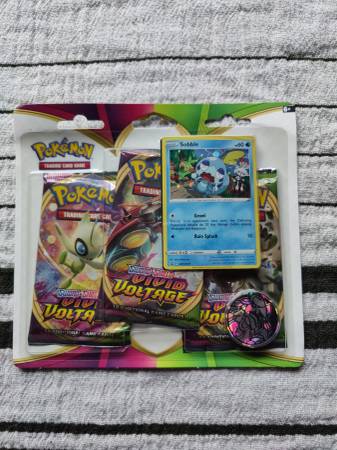 Sealed Vivid Voltage 3-pack blister featuring holographic Galarian starter Sobble. contains 3 Vivid Voltage booster packs, 1 holo Sobble and 1 game coin **LOCAL PICKUP ONLY @Corvallis Oregon**
