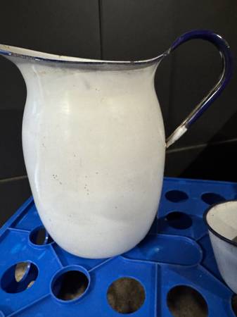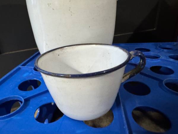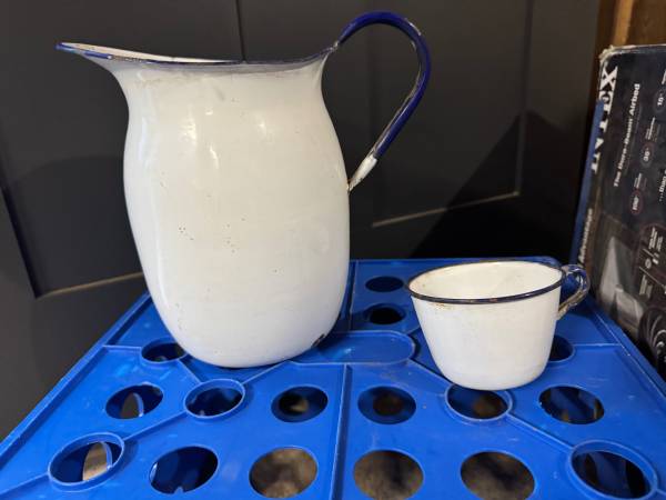 Vintage Enamel Ware Cup & Pitcher $30.00 for both