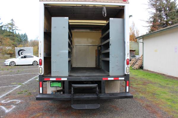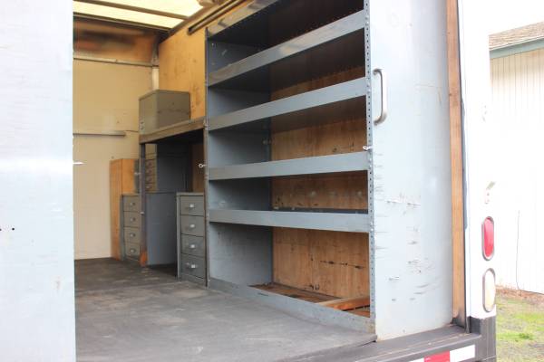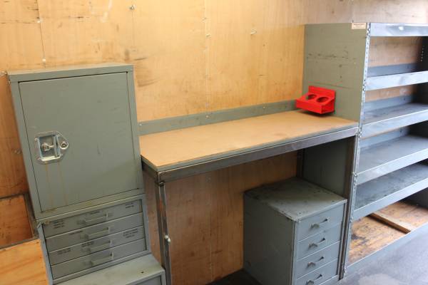 Interior of box is already setup with work station as well as plenty of storage for tools and supplies.