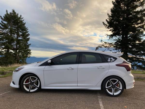 2014 Ford Focus ST 70,000 miles ST3. ISC N1 Coilovers, FSWerks turbo back Stealth Exhaust, FSWerks Intercooler, FSWerks short shift kit, Cobb motor mounts, Cobb cold air intake, Cobb Tuner with JST tune, Chin Spoilers, hood gas struts, hood vents, RTX R-Spec Wheels, led indicators on mirrors, tinted windows. Stock Suspension and wheels included if wanted. 4 year owner, all mods personally installed, project car for fun, 50 year old owner never abused. 35,000 miles with mods installed.