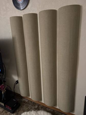 Acoustic treatment from ASC. Have for sale 1- 20” 1/4 round x 48” 2- 16” 1/4 rounds x 60” 4-1/8 rounds x 60” All are in quartz fabric. 541-nine-90-8994