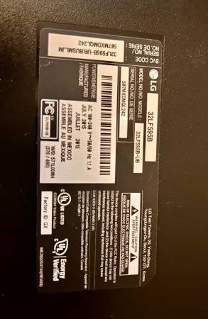LG 32 inch flat screen TV with stand, remote. Inputs: 2 HDMI 2 USB Component LAN Optical audio Tuner (antenna) Works great, just not using it. $35