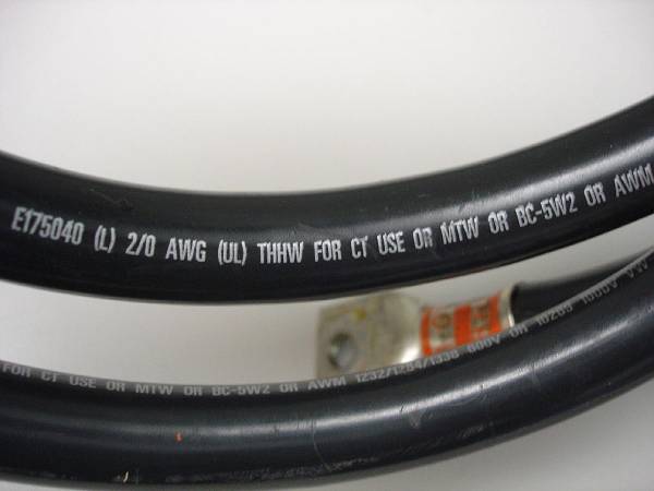 The casing says: E175040 (L) 2/0 AWG (UL) THHW FOR CT USE OR MTW OR BC-5W2 OR AWM 1232/1284/1338 600V OR 10269 1000V