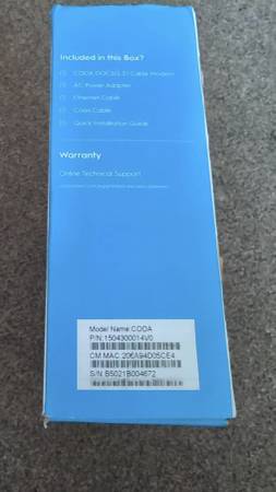 Used Hitron CODA modem, verified compatible with Xfinity & Spectrum; includes modem, power cable & coaxial cable. No ethernet cable.