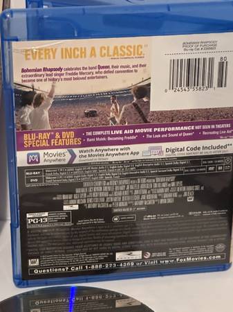 Bohemian Rhapsody movie Blu-ray & DVD disc (no digital) Queen Freddy Mercury
