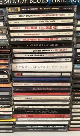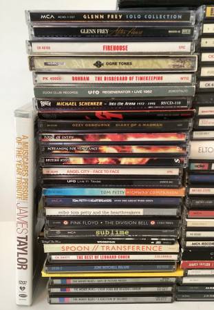 Mostly 1970s-1990s artists. Includes cds from Eagles, Tom Petty, Elton John, James Taylor, UFO, Judas Priest, Yes, The Moody Blues, Glenn Frey, Phil Collins, Ozzy Osbourne, Pink Floyd, around 10 country music cds.