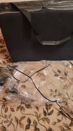 Folding mattress. Foam. Used once. Fancy cover. Great for visitors, guests. Camping, RVs, dorm room.
