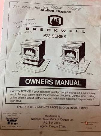 Breckwell P23 pellet stove with horizontal vent. 4 speed pellet auger control. Blower fan. Tile pad included. Please text or call Blane 541-fourzeroone- onethousand