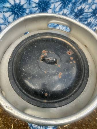 Big keg with hole cut in top Good for: cooking crab, boiling corn, scalding chickens for plucking, or maybe making a special brew About 22 inches tall and 14 inches wide