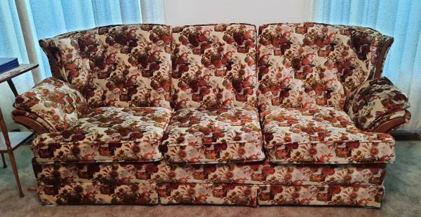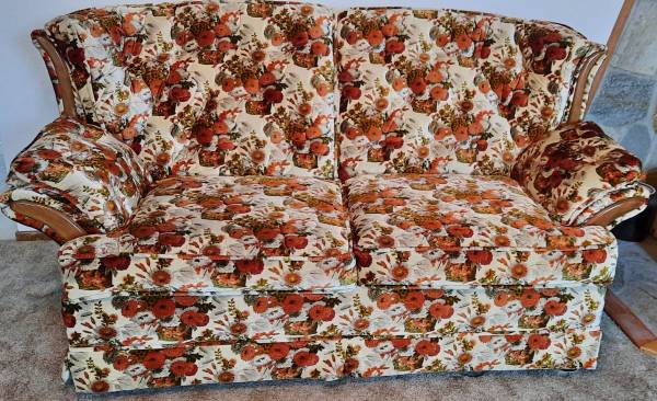Vintage, 1980's, floral brown tones, Couch $75, Loveseat $60. One owner. Smoke free and child free home. See matching Maple wood coffee table and end tables posted on 11/5.
