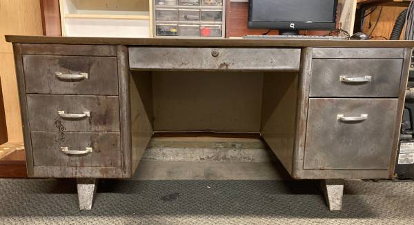 This is a mid-century steel tank desk, built to last and perfect for a workshop, garage, office, or restoration project. These desks are nearly indestructible.