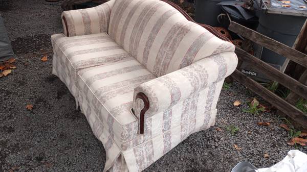 A free little love seat in really nice shape is undercover and dry. I'll give it a couple of days before it goes to the dump. I need it gone ASAP it is very light, and I am happy to help load located in Sweet Home, OR, pick up only, I will not deliver.
