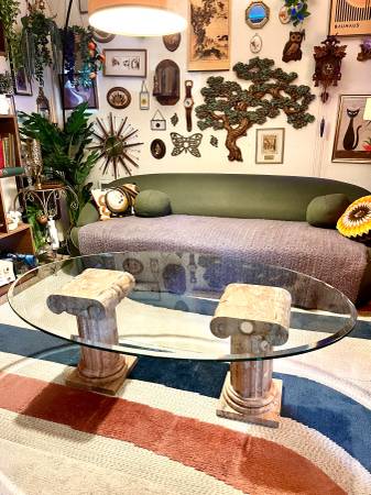**Listing is for coffee table ONLY (column bases + glass top), centerpiece decor is NOT INCLUDED**