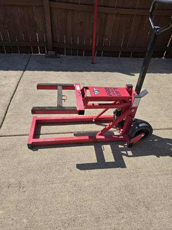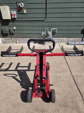 FISCHER ATV/MOWER JACK HEAVY DUTY HIGH LIFT JACK 750LB CAPACITY EXCELLENT CONDITION SOLD MY BIG MOWER AND NO LONGER NEED IT WILL NOT REPLY TO SCAMS ASKING $175.00 THANKS FOR LOOKING...