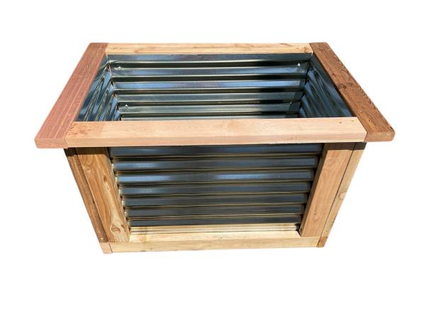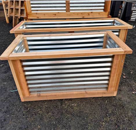 I will be delivering this sunday so place your order Cedar with corrugated metal On the ground planter Home delivery Made with cedar 2x4 Cedar with corrugated metal On the ground planter Made with...