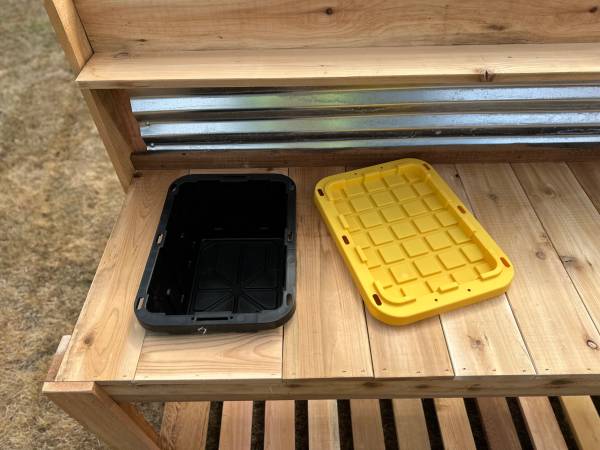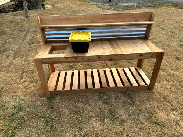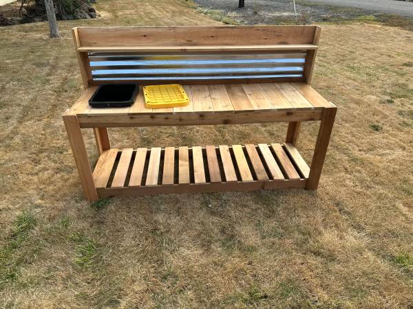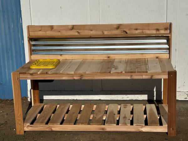 Cedar potting tables with tub all cedar or with metal 4 feet tall 2 feet deep All sizes 4 feet wide $175 5 feet wide $200 6 feet wide $225 We take Cash, Venmo, cash app, credit cards, PayPal Pickup...