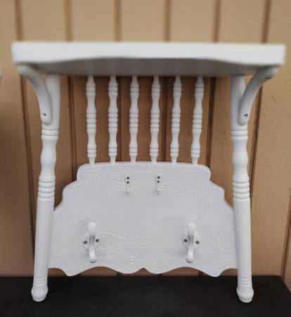 Unique Vintage Chair Coat and Keys Shelf Rack or Bathroom Decorative Rack Comes with hanging wire on back The hooks on the front can be reversed if you want the shelf to be on the bottom with the...