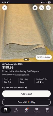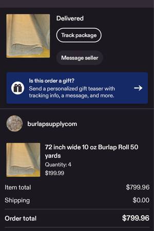 We have 4 brand new, never opened rolls of burlap that was meant for a wedding component but the tornado winds from the weekend of 10/25 ruined the site we were planning to use them at. So now they are for sale and the money raised will help us cover the cost of the venue we had to move to.