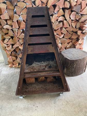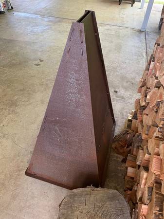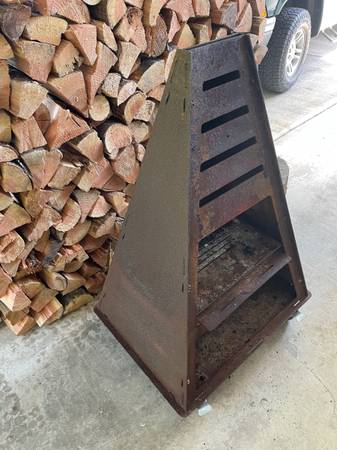 Pryofire chiminea tower fire pit. Made of thick steel. On casters, can be rolled around. Retails for over $500