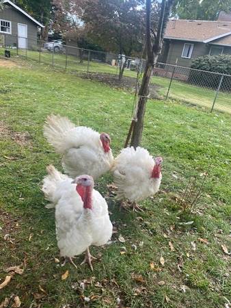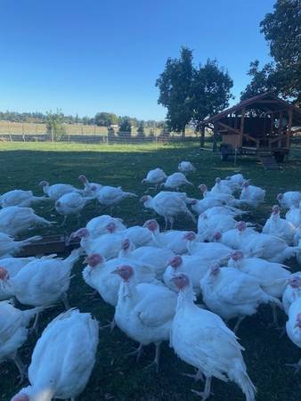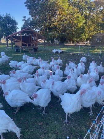 We have Broad Breasted white Turkeys ready for your Thanksgiving Dinner. Our turkeys are free range grass fed, without antibiotics.