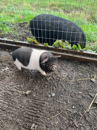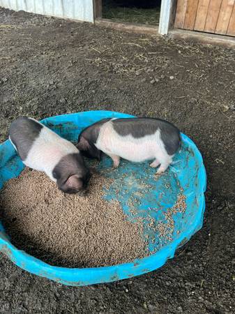 One Horse Slough LLC has piglets again! These adorable black and white KuneKune / Meishan piglets will steal your heart. We have 1 barrow and 3 gilts available. $75 each. Discounts for multiple piglets! Fully weaned, fat and ready for pickup. Contact me today!
