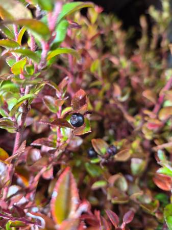 It thrives in acidic, well-draining soil and can grow in sun or shade, though it produces more fruit in sunnier locations. New spring foliage has a reddish hue before maturing to a shiny, dark green, and the plant is also valued for its ornamental qualities.