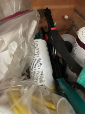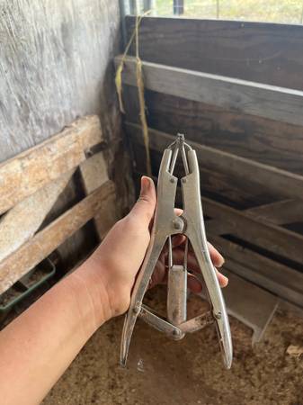 Lots of stuff, definitely worth more than 50 I just want it gone. There is and ear tagger and a bander in there and lots of medical supplies