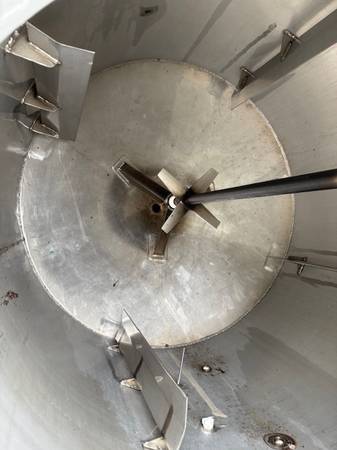 00 gallon SS (300 series alloy) mixing and/or storage tank. Conical bottom. Manway on top.